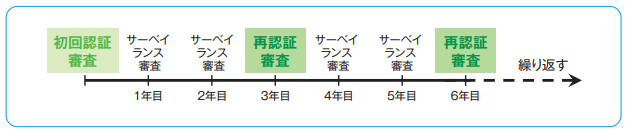 - 一度認証を取得すればよいわけではなく、サーベイランス審査(継続審査)や再認証審査を定期的に受ける必要がある